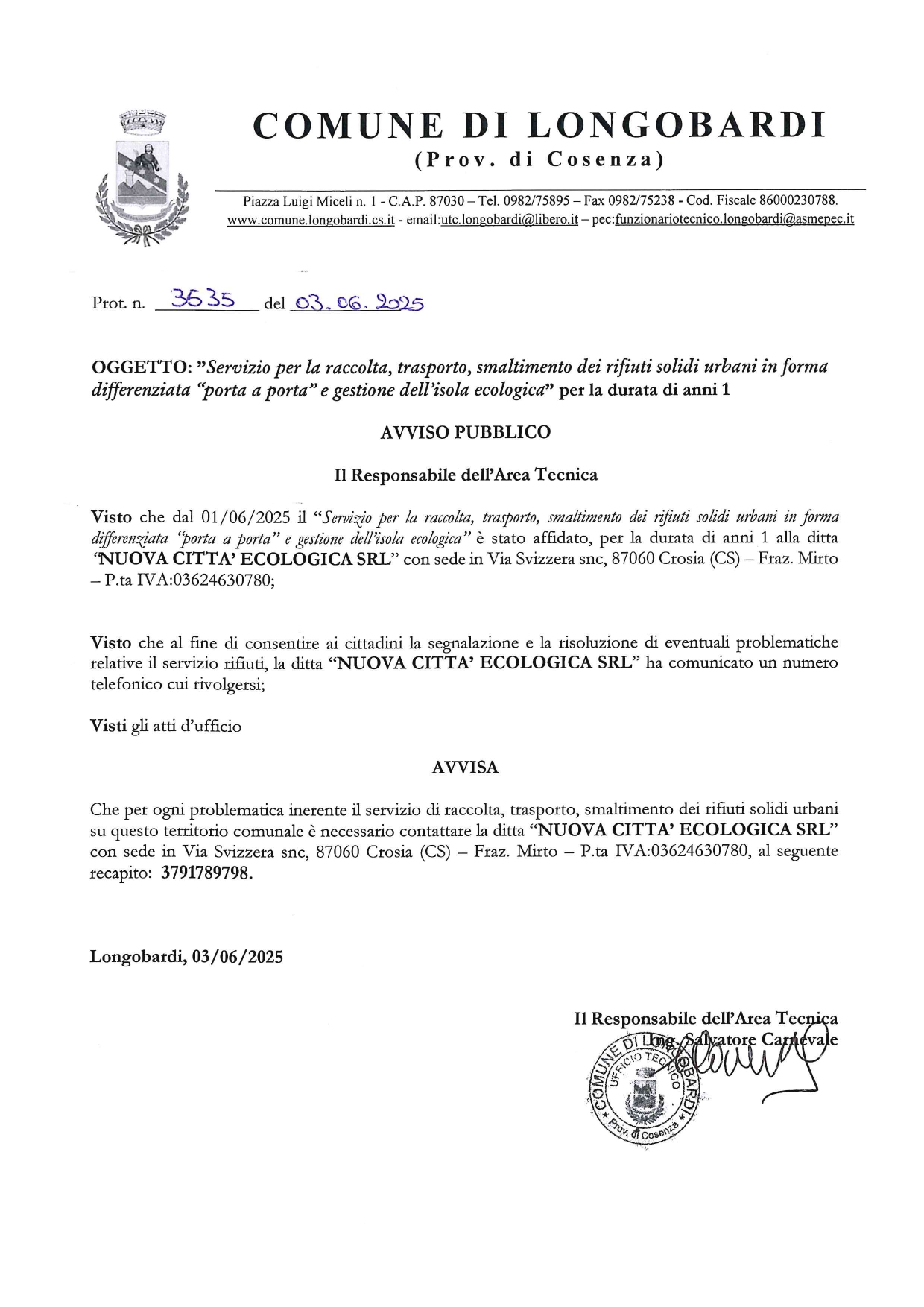 Contatto servizio RSU (CELL 3791789798) come da documento consultabile in allegato